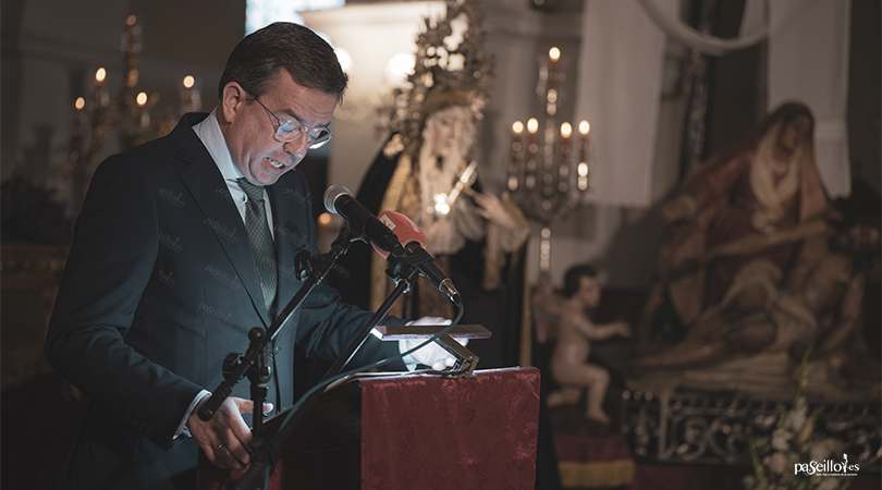 El pregón concluyó con una mirada a la devoción a las imágenes titulares de la cofradía, evocando la figura de Jesús de Medinaceli, la Virgen de las Angustias y la Virgen de la Pasión, a las que definió como pilares espirituales de la corporación y de la religiosidad popular de Lucena.