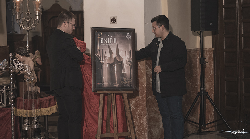 El cartel es obra del fotógrafo lucentino Jesús Cañete Fernández, y recoge una imagen cargada de simbolismo en la que aparecen los hermanos de la cofradía en el momento de la salida para realizar la estación de penitencia, instantes previos al inicio de su recorrido procesional en la tarde del Lunes Santo. La fotografía destaca por la cuidada composición y la luz que envuelve la escena, reflejando la solemnidad y el recogimiento de uno de los momentos más significativos para la hermandad.