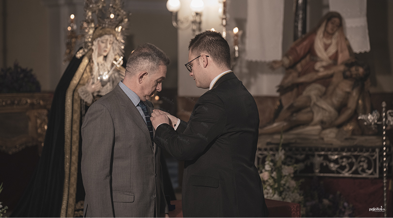 Tras la presentación del cartel, la cofradía procedió a la entrega de las insignias de oro de la hermandad, una distinción concedida a varios hermanos en reconocimiento a su trayectoria y compromiso con la corporación. En esta ocasión fueron distinguidos Francisco Ruiz Franco, Manuel Franco Luque y Antonio Medina Orellana, este último a título póstumo, siendo recogida la insignia por Sergio López Ramírez en representación de su familia.