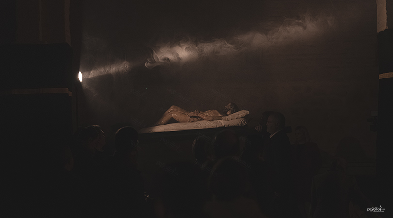 Uno de los momentos más destacados tuvo lugar al término de la eucaristía del segundo día, cuando, con la única iluminación de la candelería del altar, la imagen del Cristo Yacente fue portada en andas por miembros de la junta de gobierno durante el rezo del Vía Crucis, en una escena de especial recogimiento.