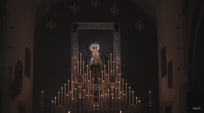 Para estos cultos, la cofradía dispuso un cuidado altar en el presbiterio del templo. Nuestra Señora de la Soledad presidía el conjunto ante un dosel, rodeada por cincuenta y seis piezas de candelería de orfebrería con cera blanca, distribuidas en distintos niveles para crear una atmósfera íntima y solemne. El exorno se completaba con ánforas de orfebrería con arreglo floral.